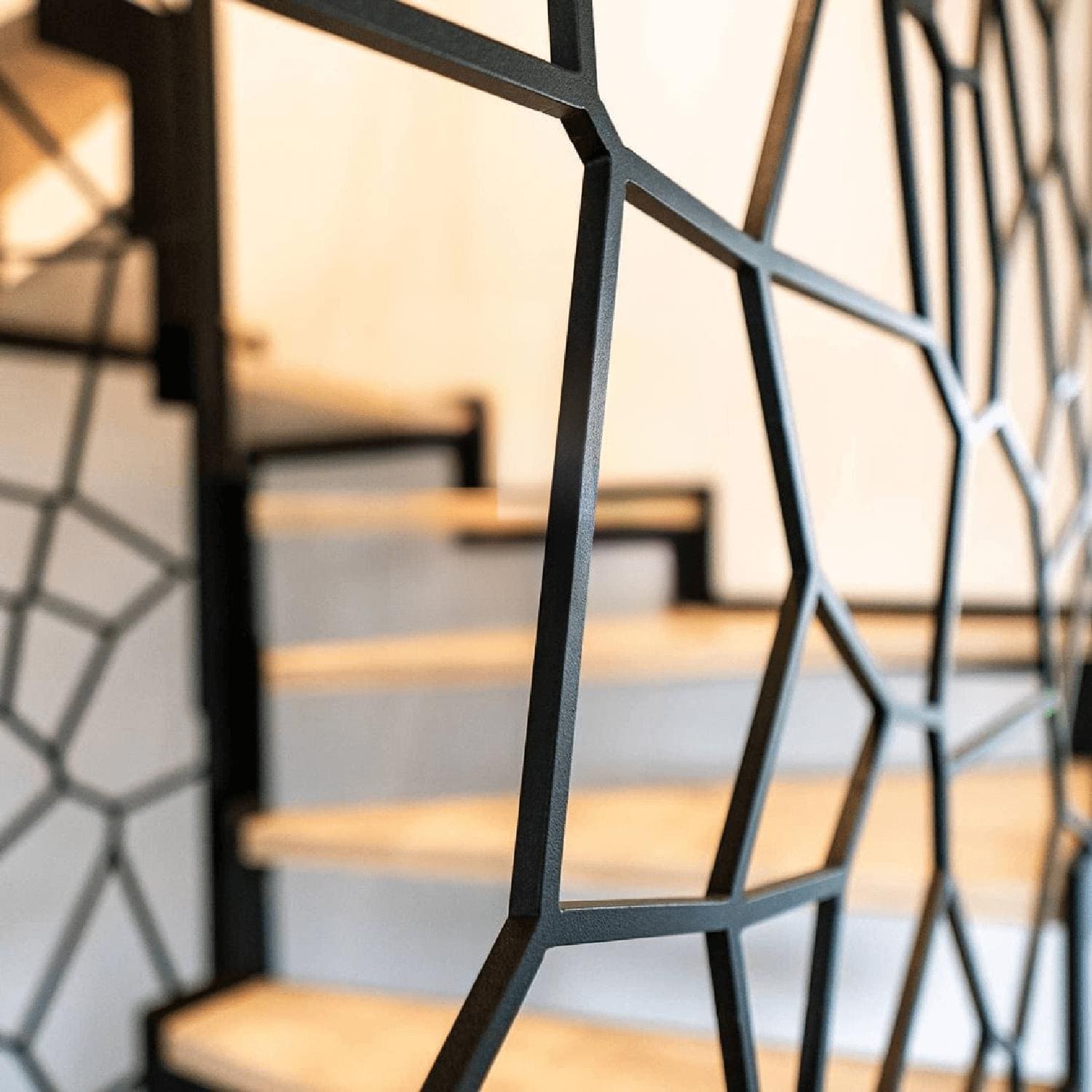 Выравниваем поверхность металла, зачищаем и красим порошком. На открытых лестницах очень важно качество шлифовки и покраски. Можем сделать каркас без стоек, воздушным и легким. На проекте учитываем детали чистовой обшивки, ставим временные ступени