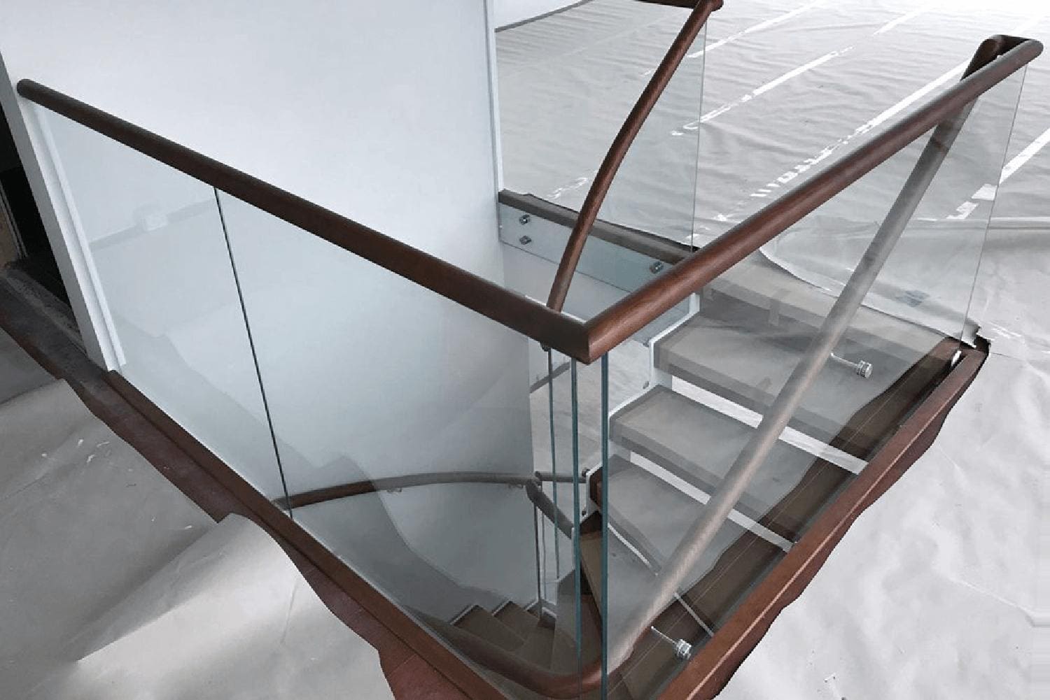 Тип ограждения: Перила из стекла триплекс 6+6 мм с поручнем из дуба
