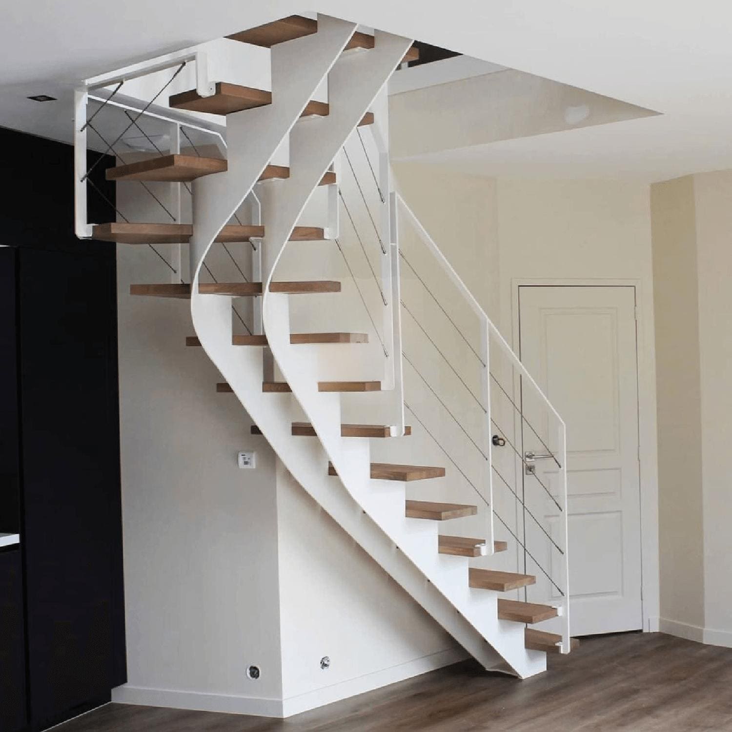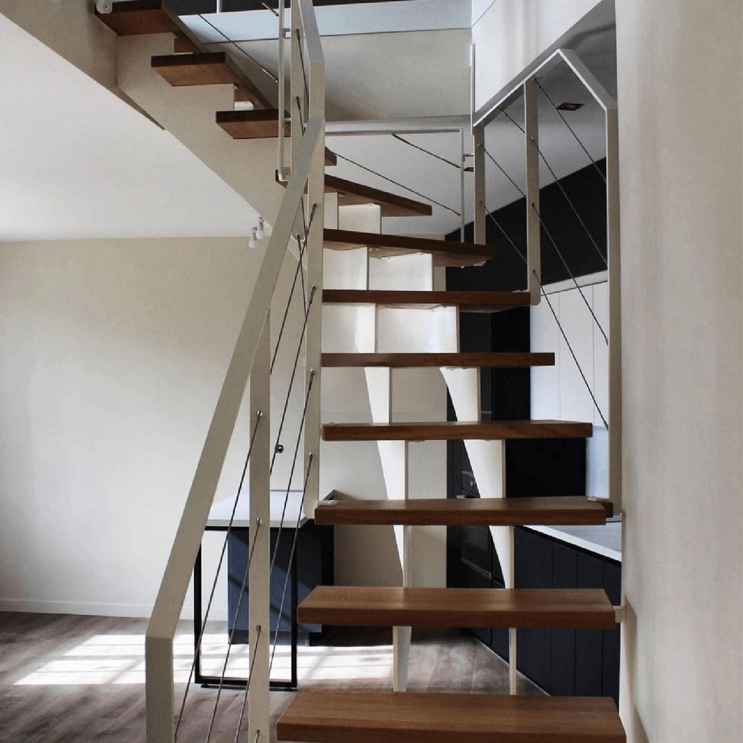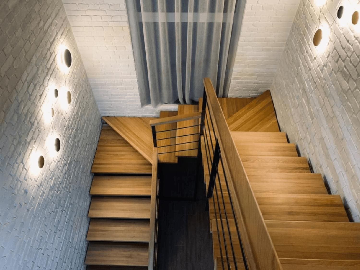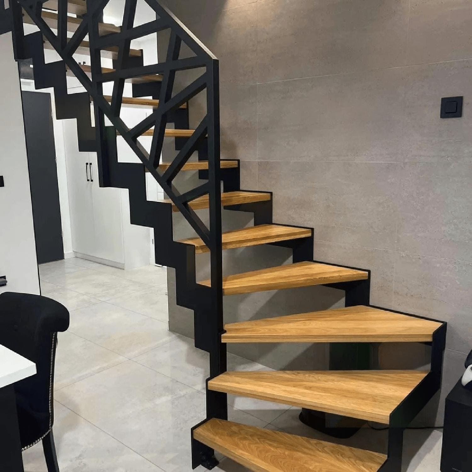 П-образная лестница с забежными ступенями в стиле Лофт