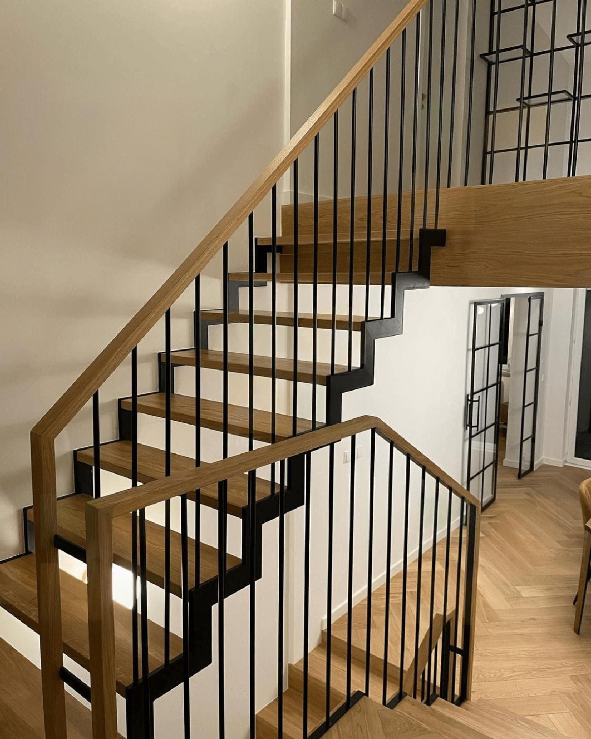 Лестница Г-образная забежная в стиле Лофт