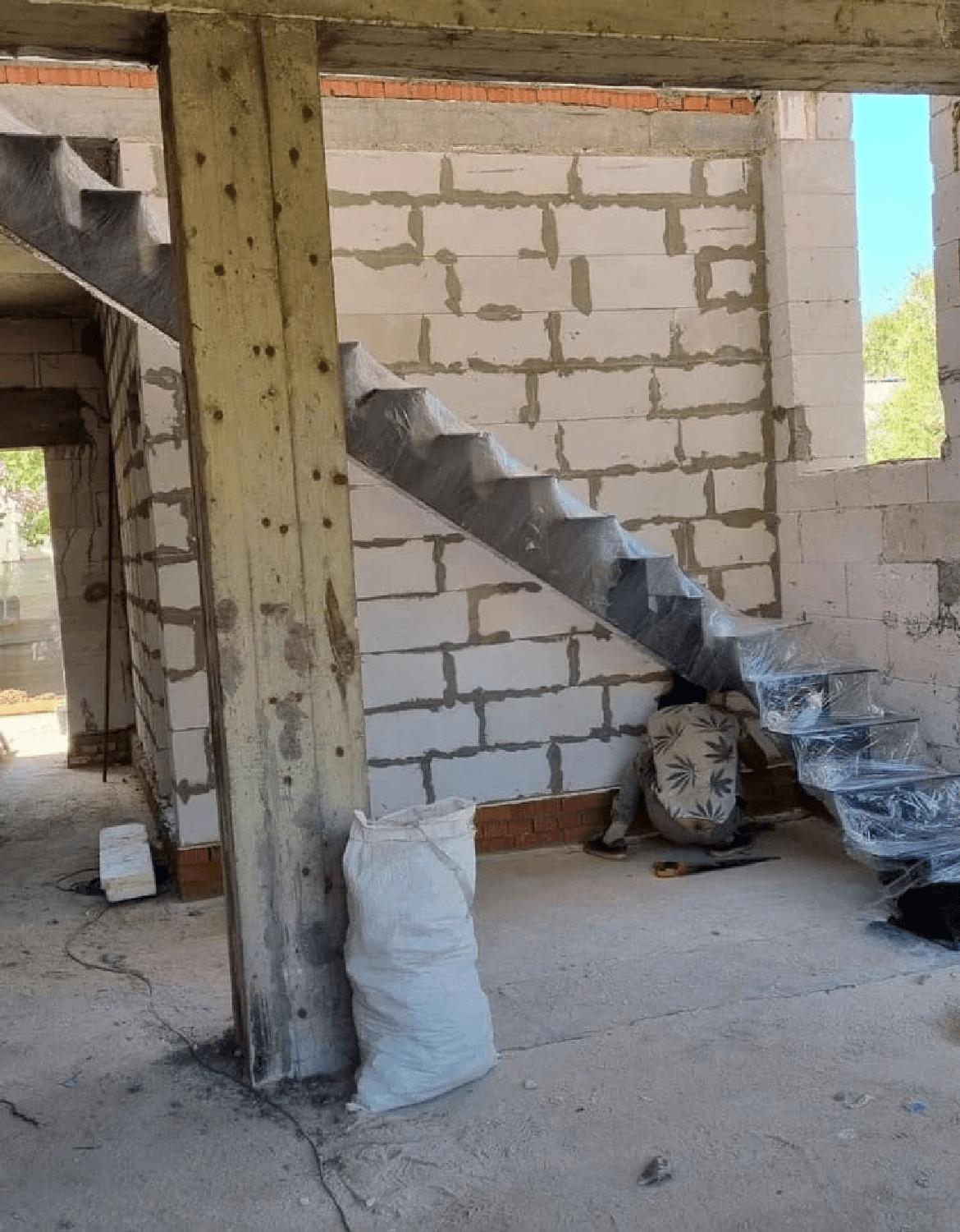 Поставили черновые ступени, чтобы было удобно подниматься во время чернового ремонта