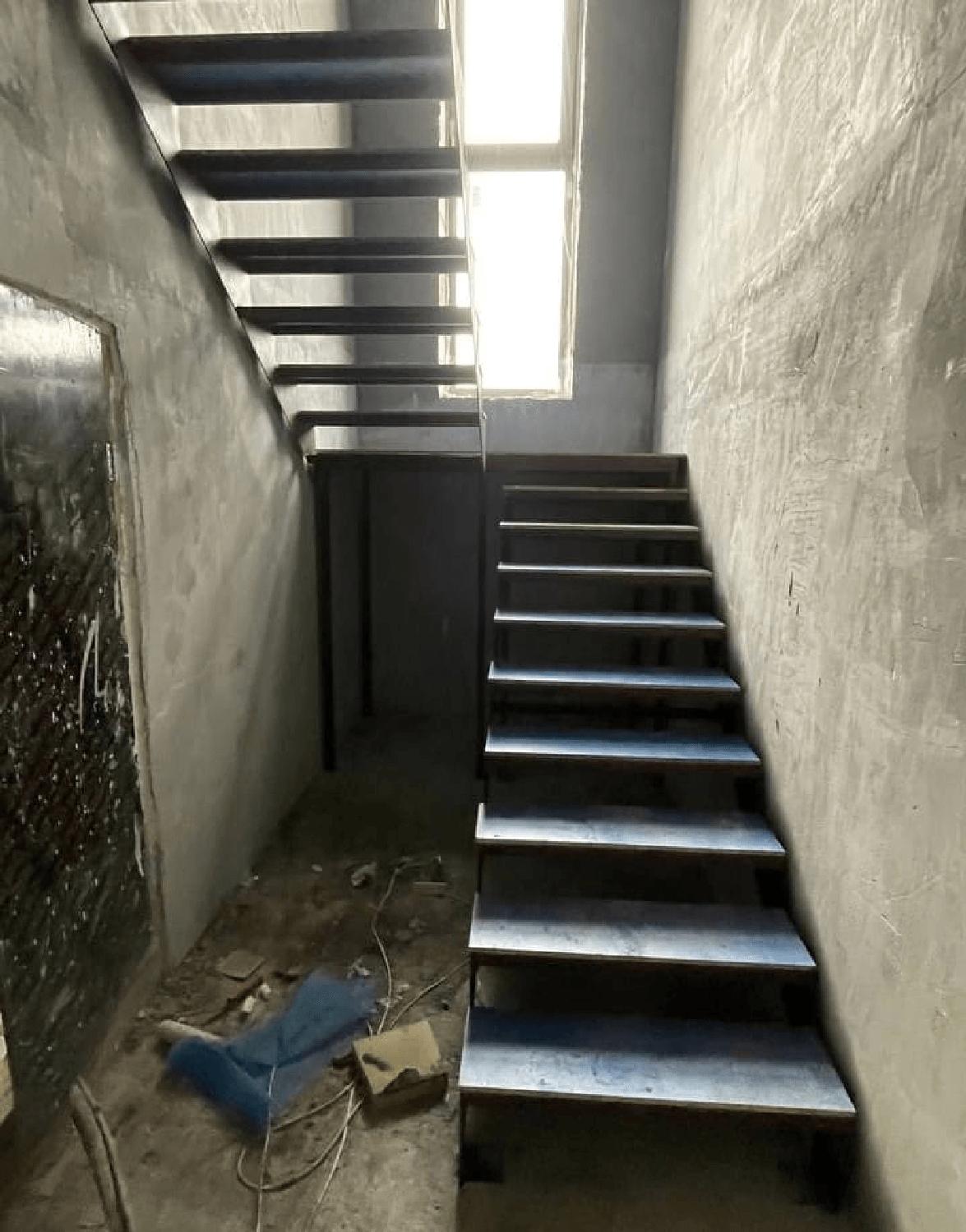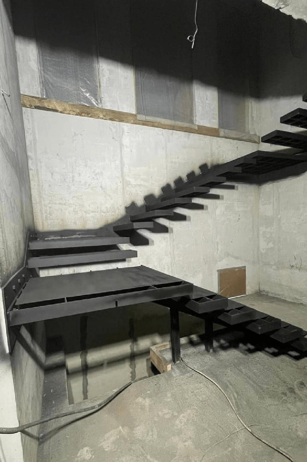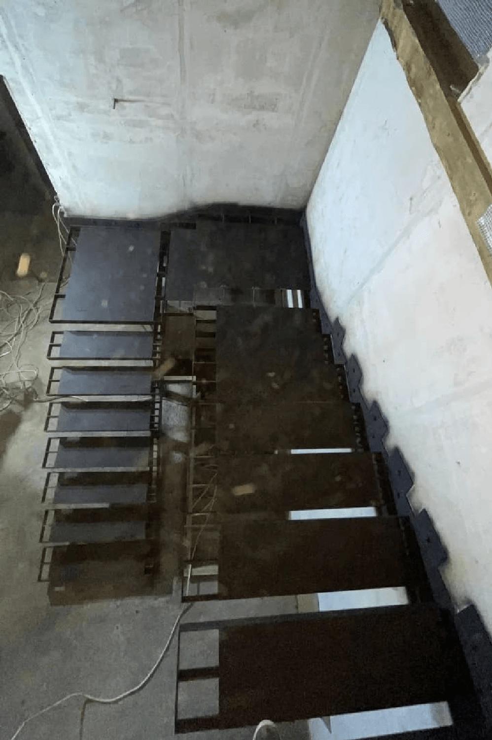 Металлический каркас лестницы закрытого типа из листа металла 6 мм.
