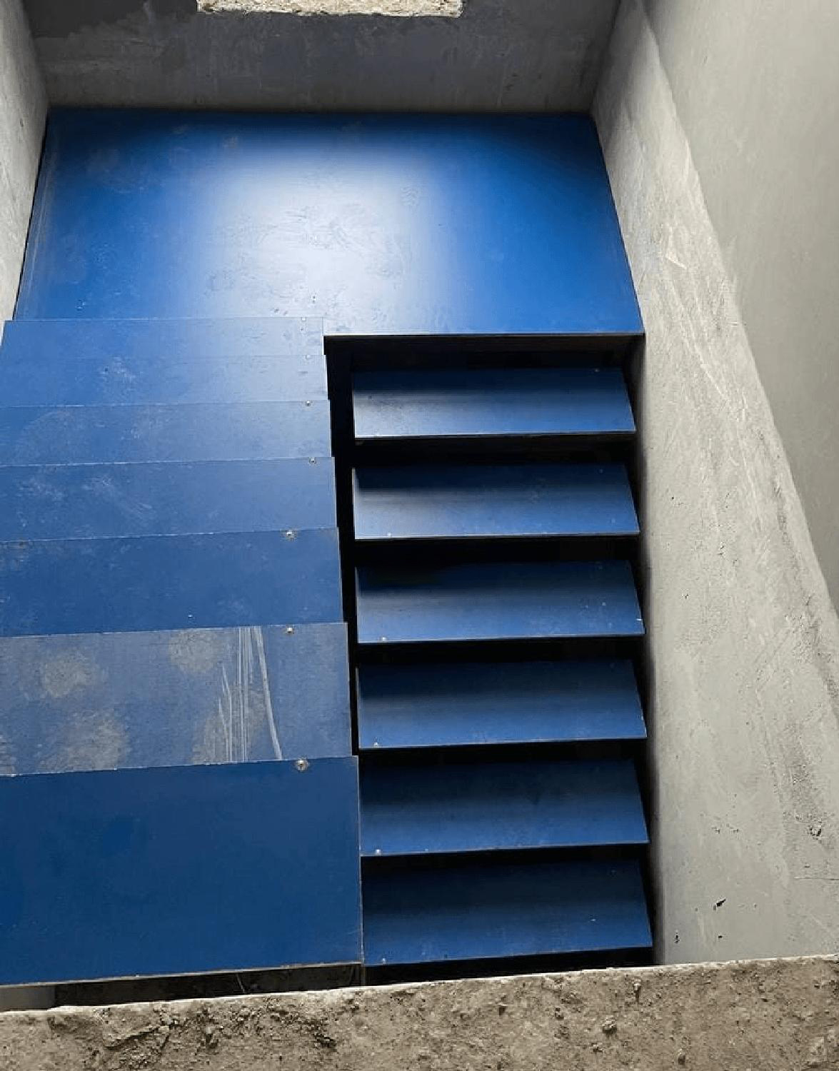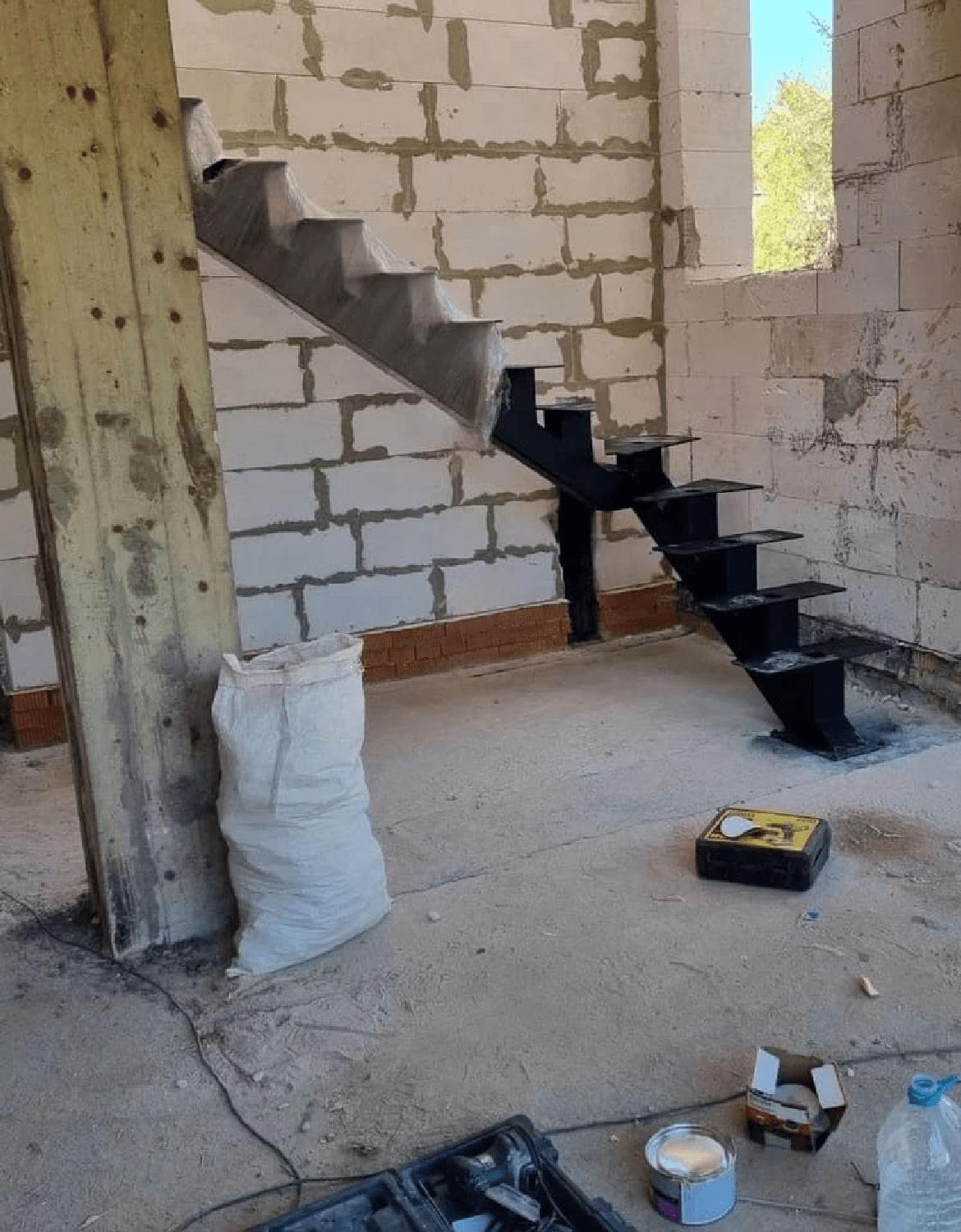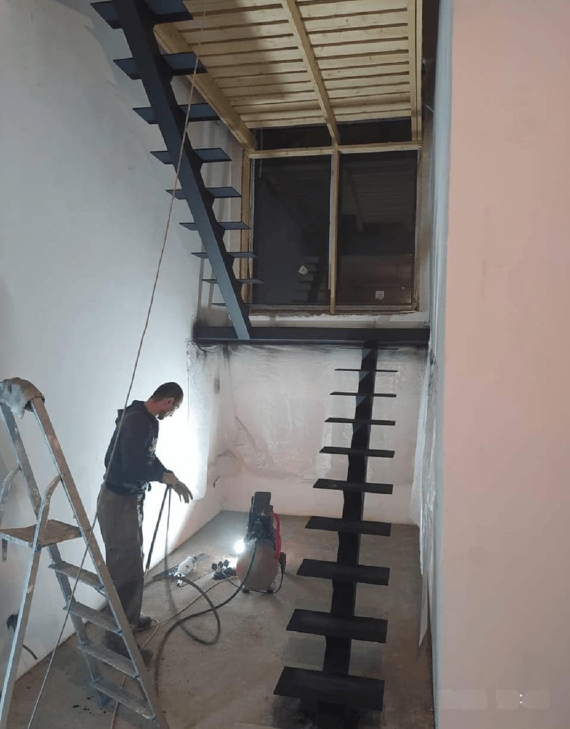 Металлический каркас лестницы закрытого типа из листа металла 6 мм.
