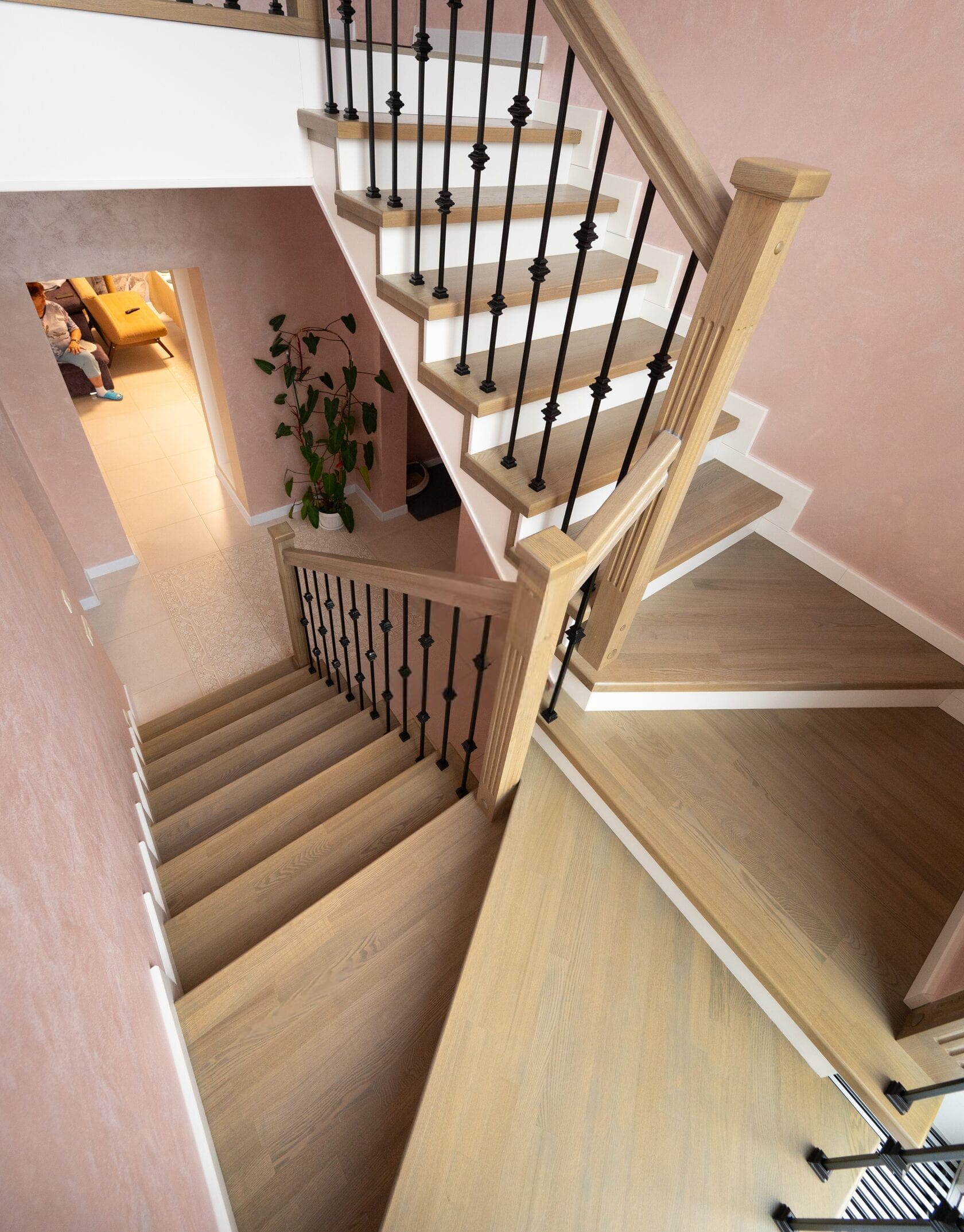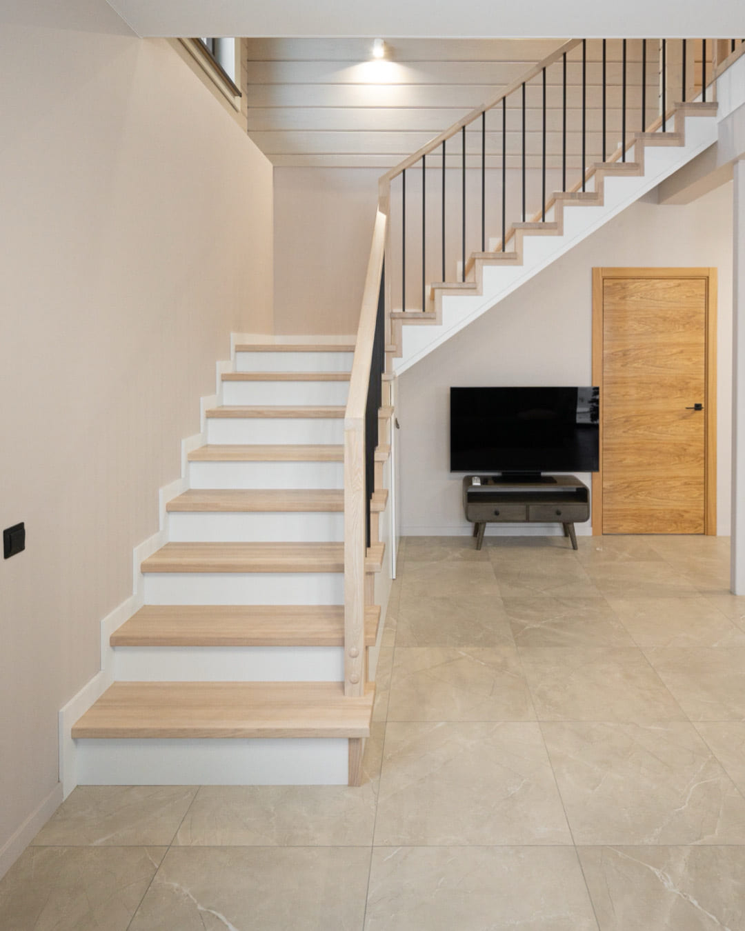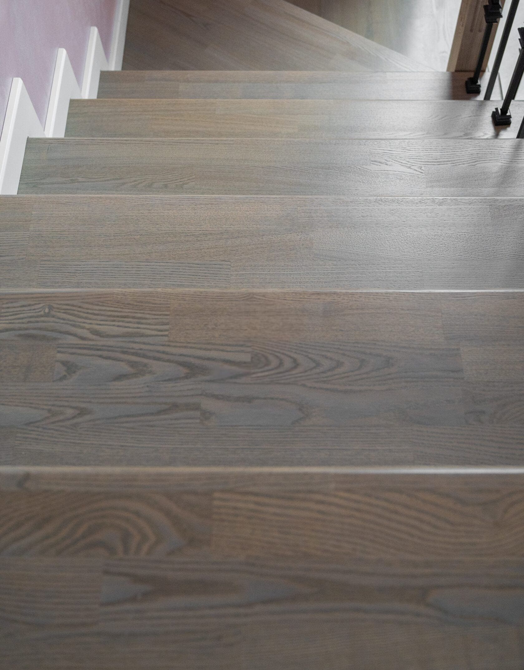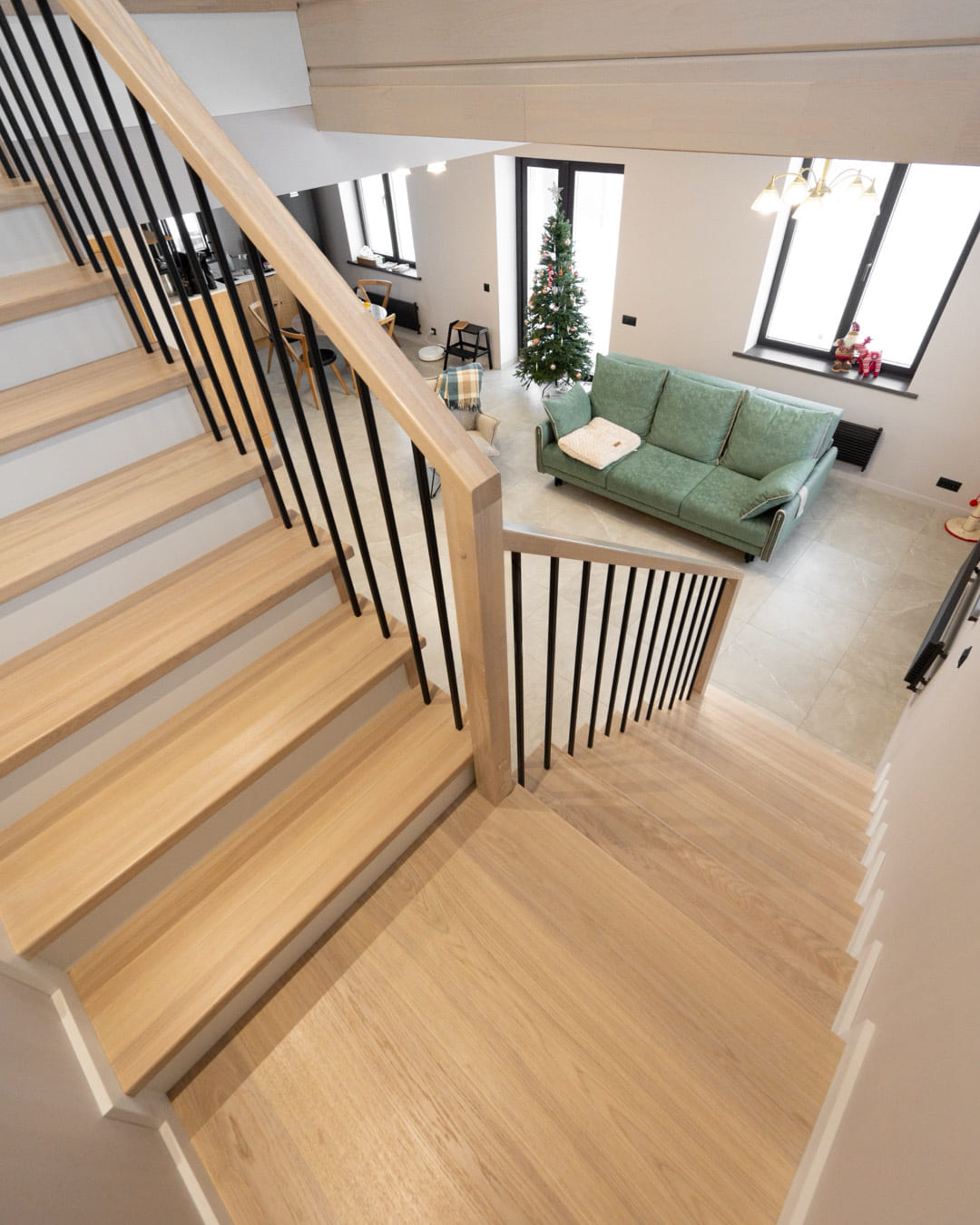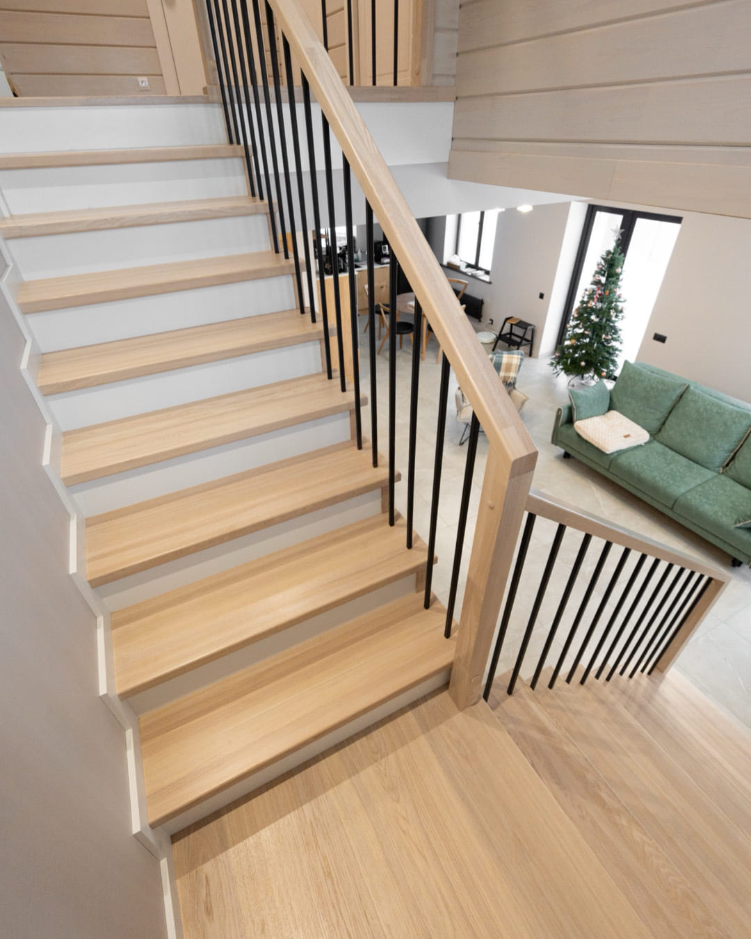 Лестница на бетоне со ступенями из цельноламельного дуба.