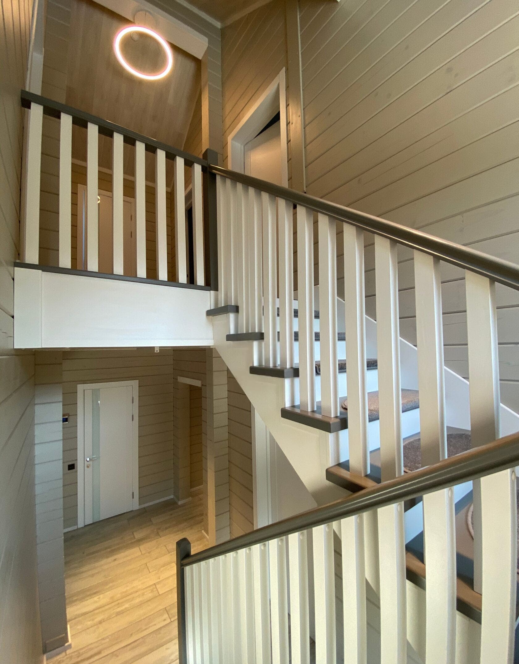 Под ступенями подсветка теплого света.