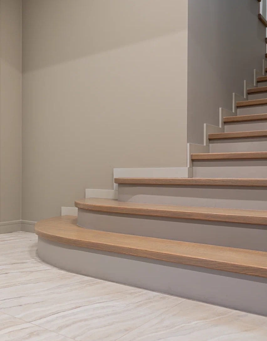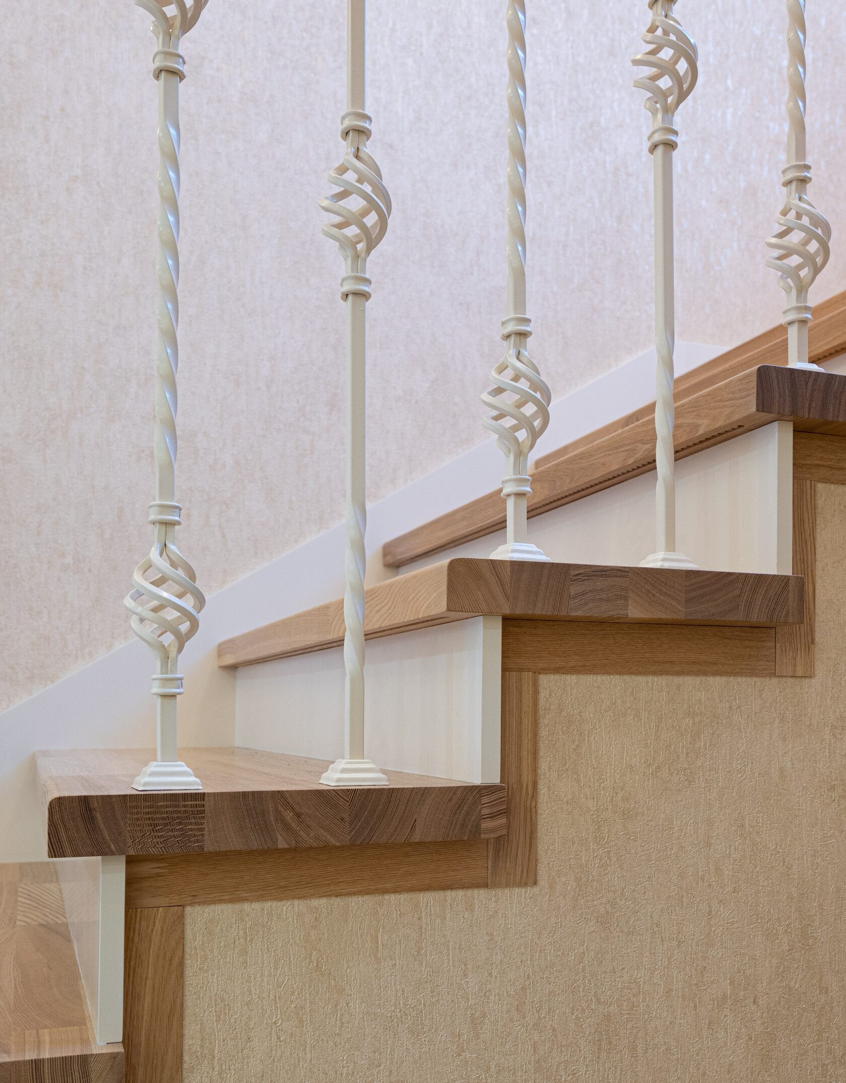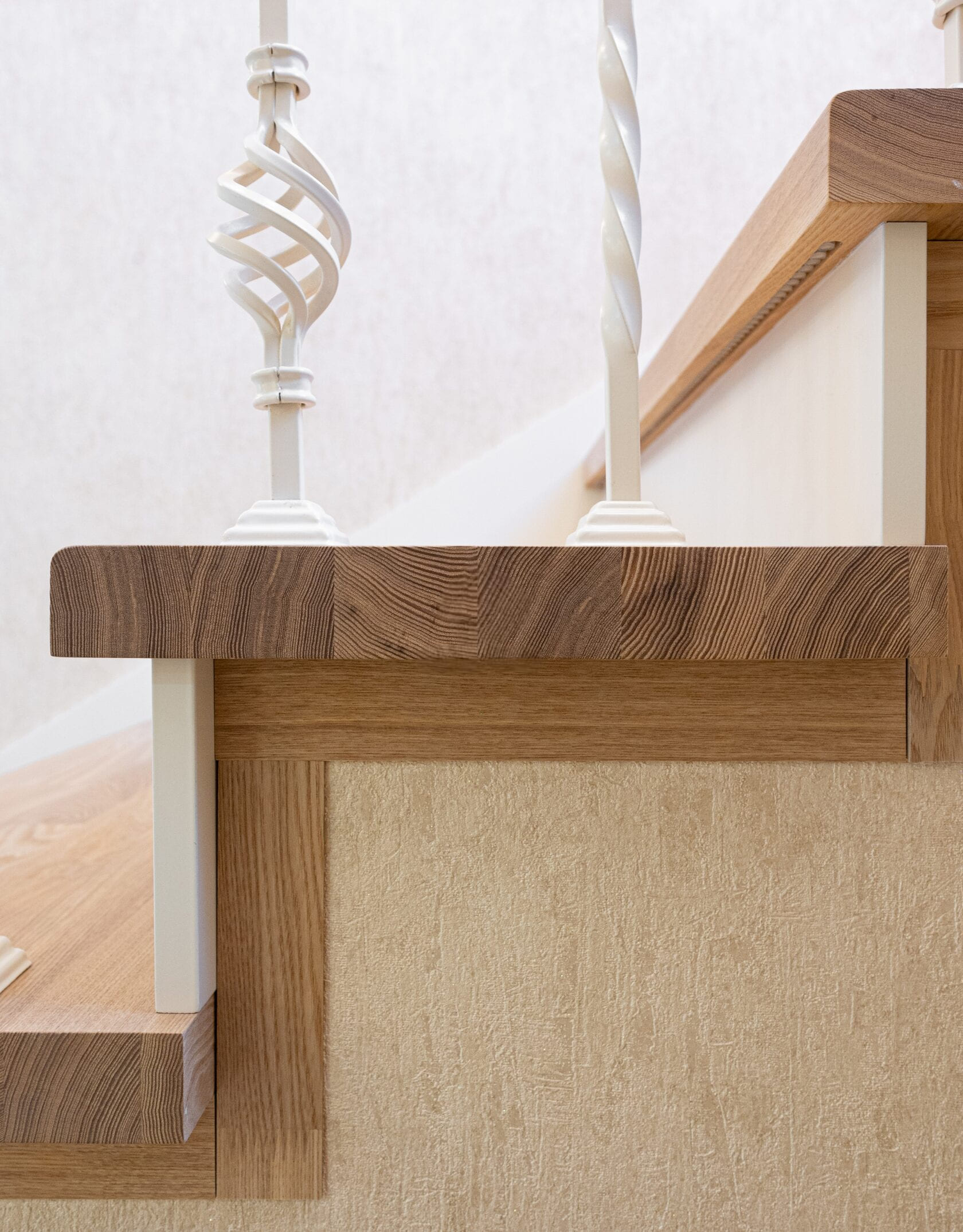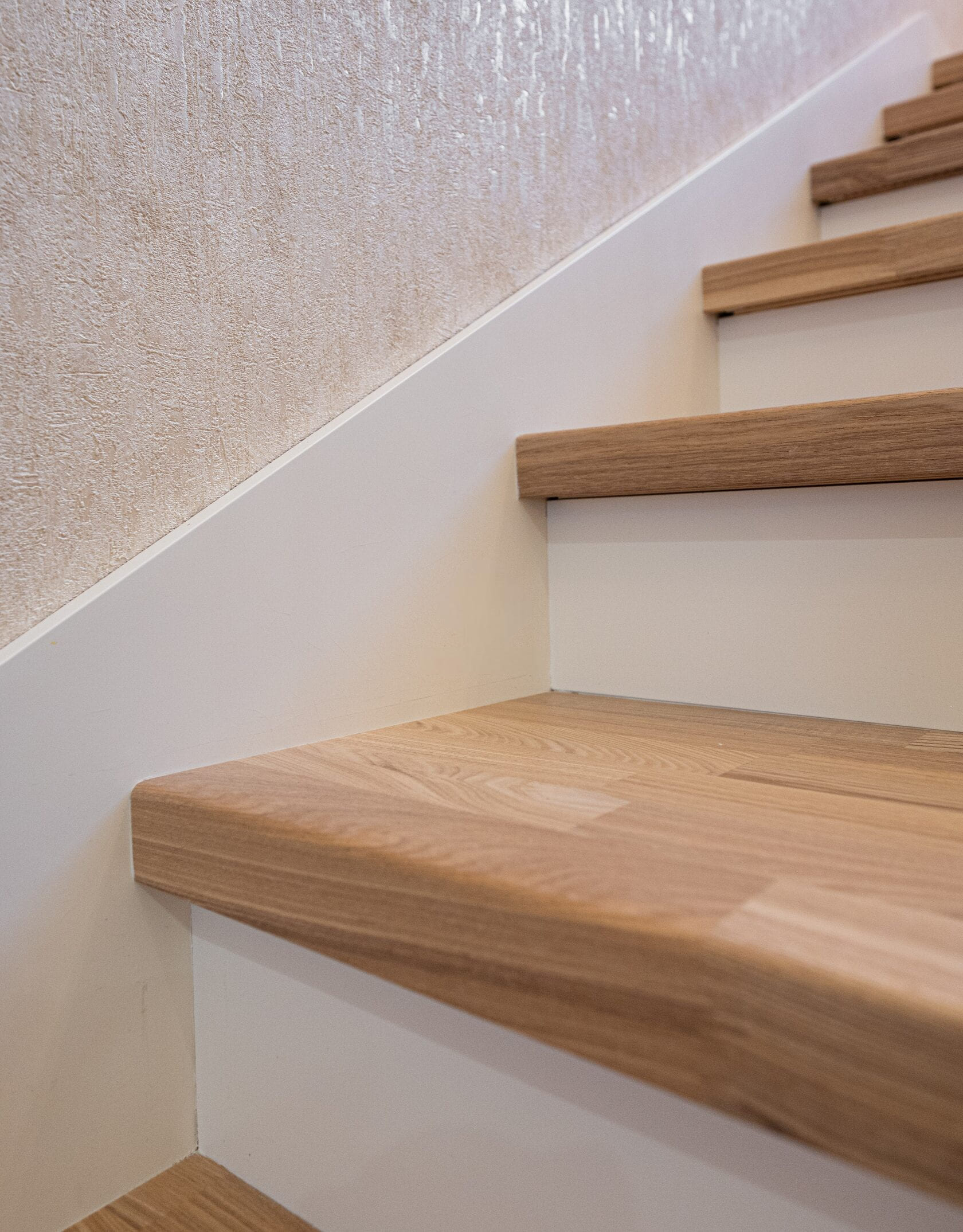 Ступени, подступенки и плинтус из цельноламельного дуба.