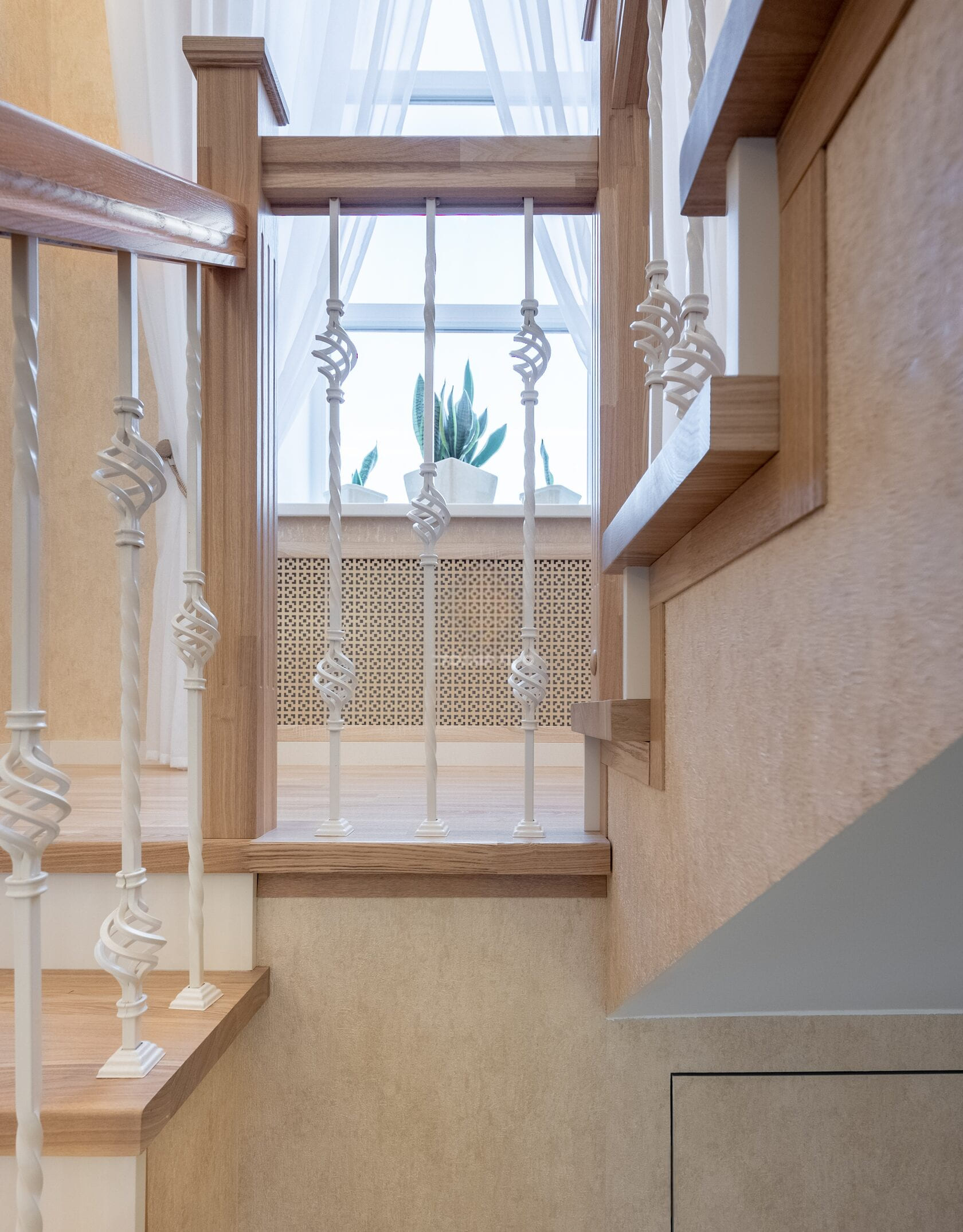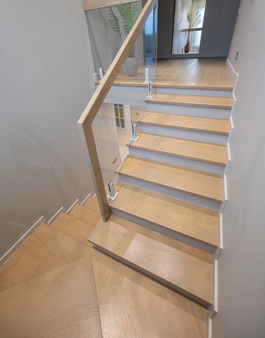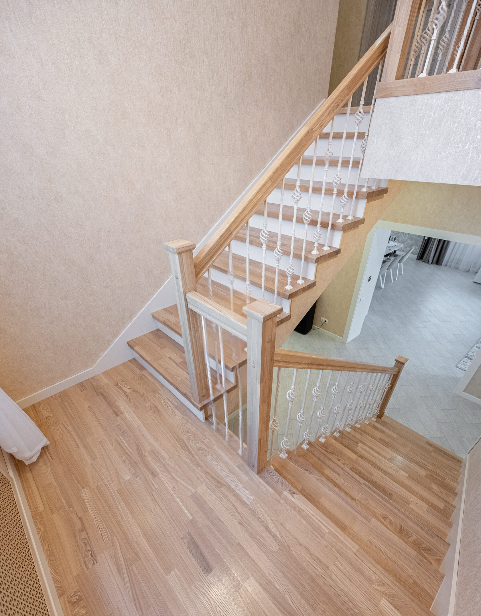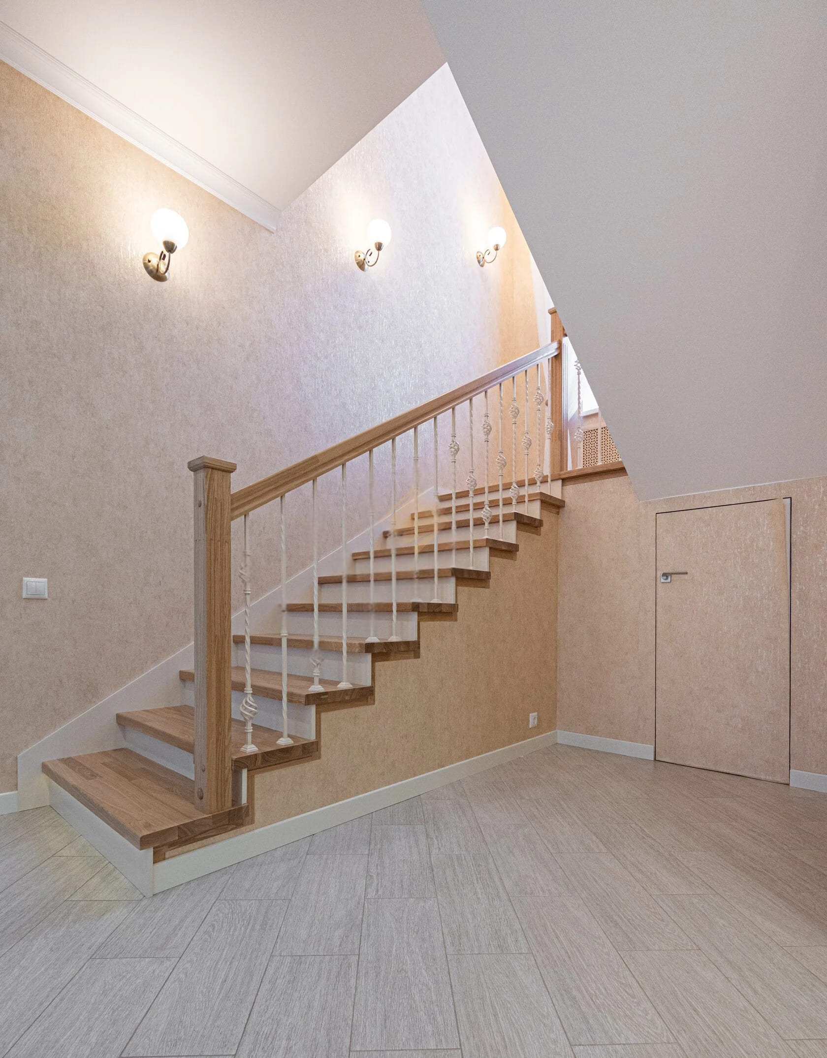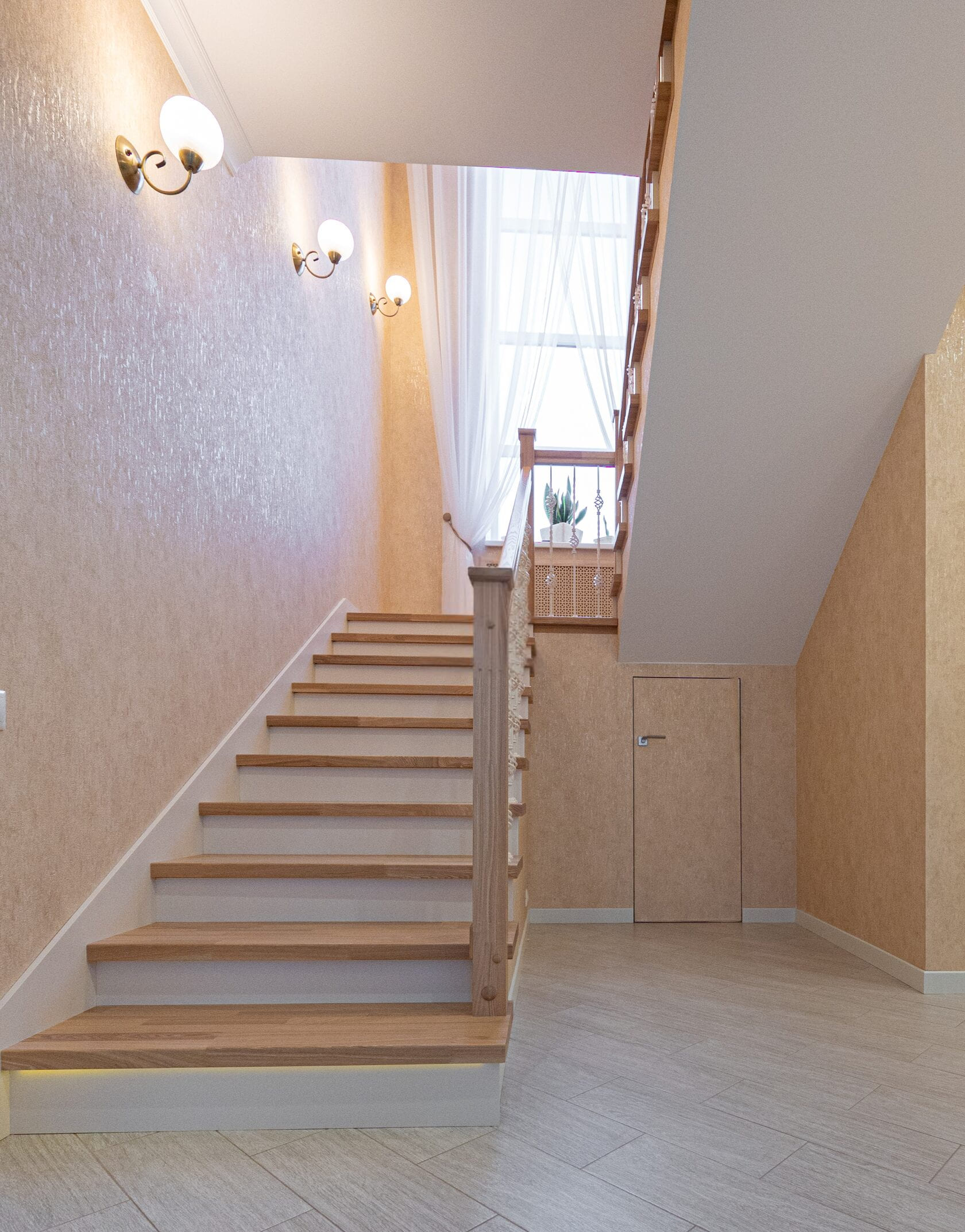 Ступени, подступенки и плинтус из цельноламельного дуба.