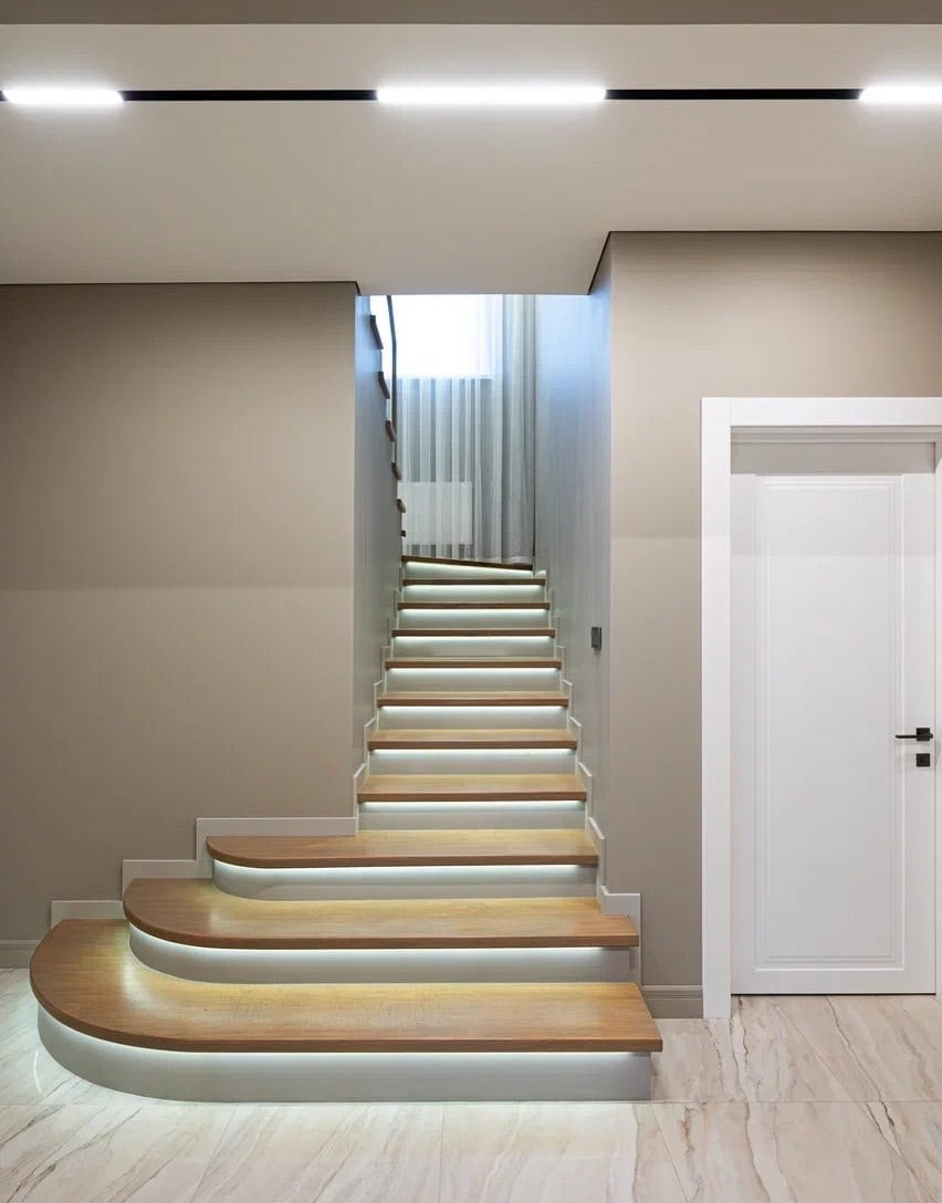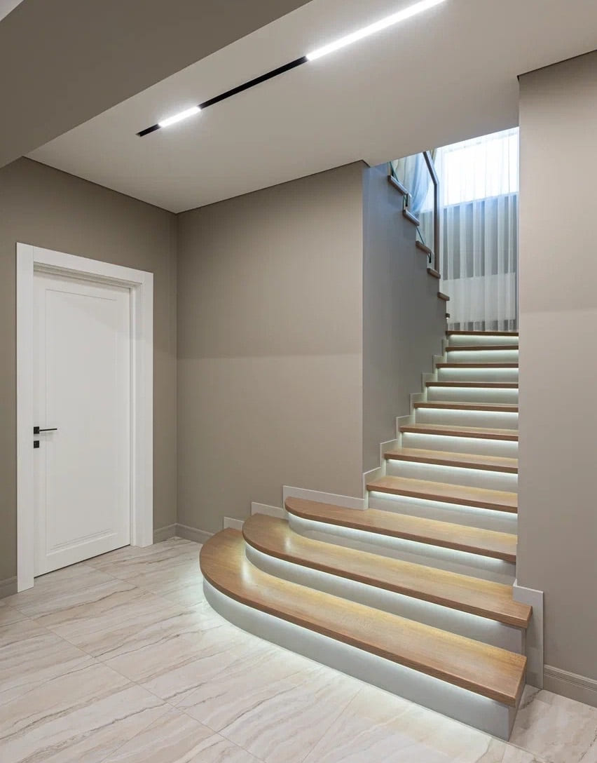 Эксклюзивная парадная лестница с тремя маршами и широкими пригласительными ступенями.