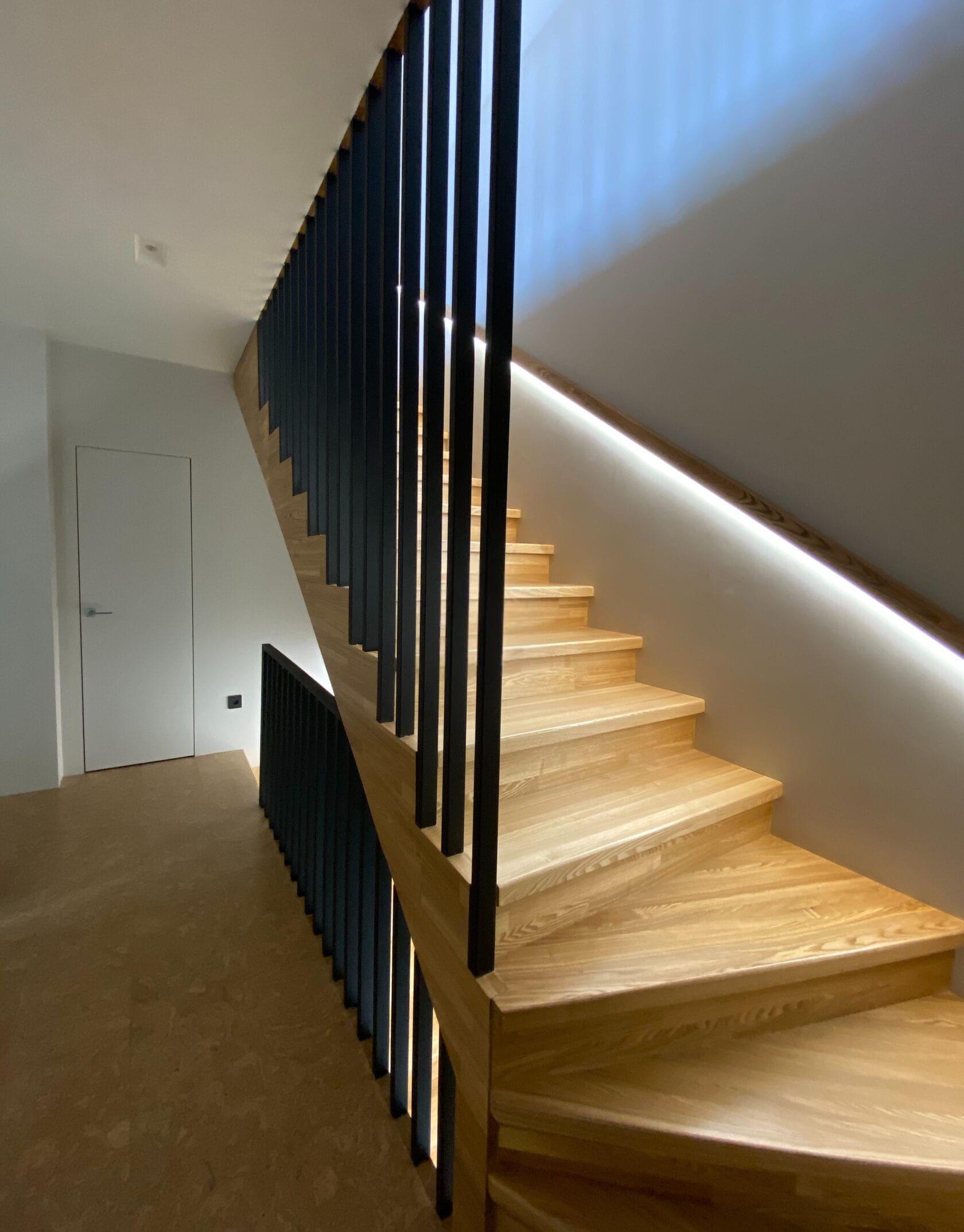 Ступени, подступенки и фальштетива из цельноламельного дуба.